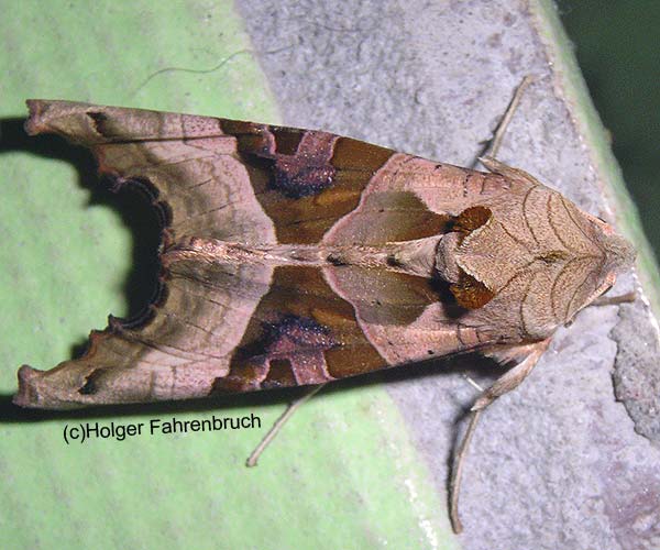 Die Achateule (Phlogophora meticulosa) wird ca. 55 mm groß und fliegt von Mai bis November. Dieser Falter wandert ab Mai aus Südeuropa ein und erzeugt hier eine Generation. Diese wandert im Herbst wieder in den Süden. Die Raupe lebt an Brennnessel, Himbeere, Weide und diversen Kräutern.